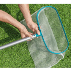 Epuisette de fond AquaNet Essential a connecter sur manche aluminium diametre 30 mm- 43 cm x 30 cm x 4.5 cm - Compatible avec les manches de nettoyage de piscine de 30 mm (diametre interieur)- Pour collecter les debris de lAeau de la piscine- Maille fi