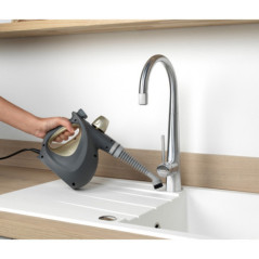 Conception legere et polyvalente pour une utilisation dans toute la maison.Nettoyage sans produits chimiques.Reservoir d'eau de 250ML facile a remplirJusqu'a 10 minutes d'autonomieCordon d'alimentation de 4mKit d'accessoires complet comprenant un pichet