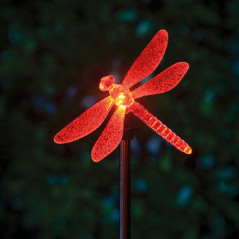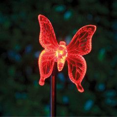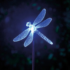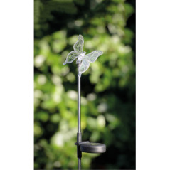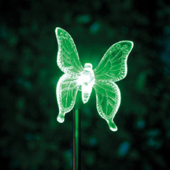 PIQUET ACIER INOXYDABLE PAPILLON/COLIBRI/LIBELLULE TRANSPARENT - LED MULTICOULEUR - 6X80CM