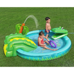 Aire de jeux et piscine gonflable pour enfants BestwayA® Crocodile CoveA 2,24 m x 1,81 m x 72 cm Taille : 2 24 m x 1,81 m x 72 cmParfait pour les enfants de 2 ans et plusDesign sur le theme du crocodileToboggan avec tapis d'atterrissage soupleLe pulve