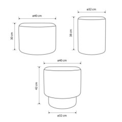 DIMENSIONS : POUF COMPLET : DIAMETRE 40*40 CMPOUF ETROIT DIAMETRE 32*37 CMPOUF LARGE DIAMETRE 40*31 CM
